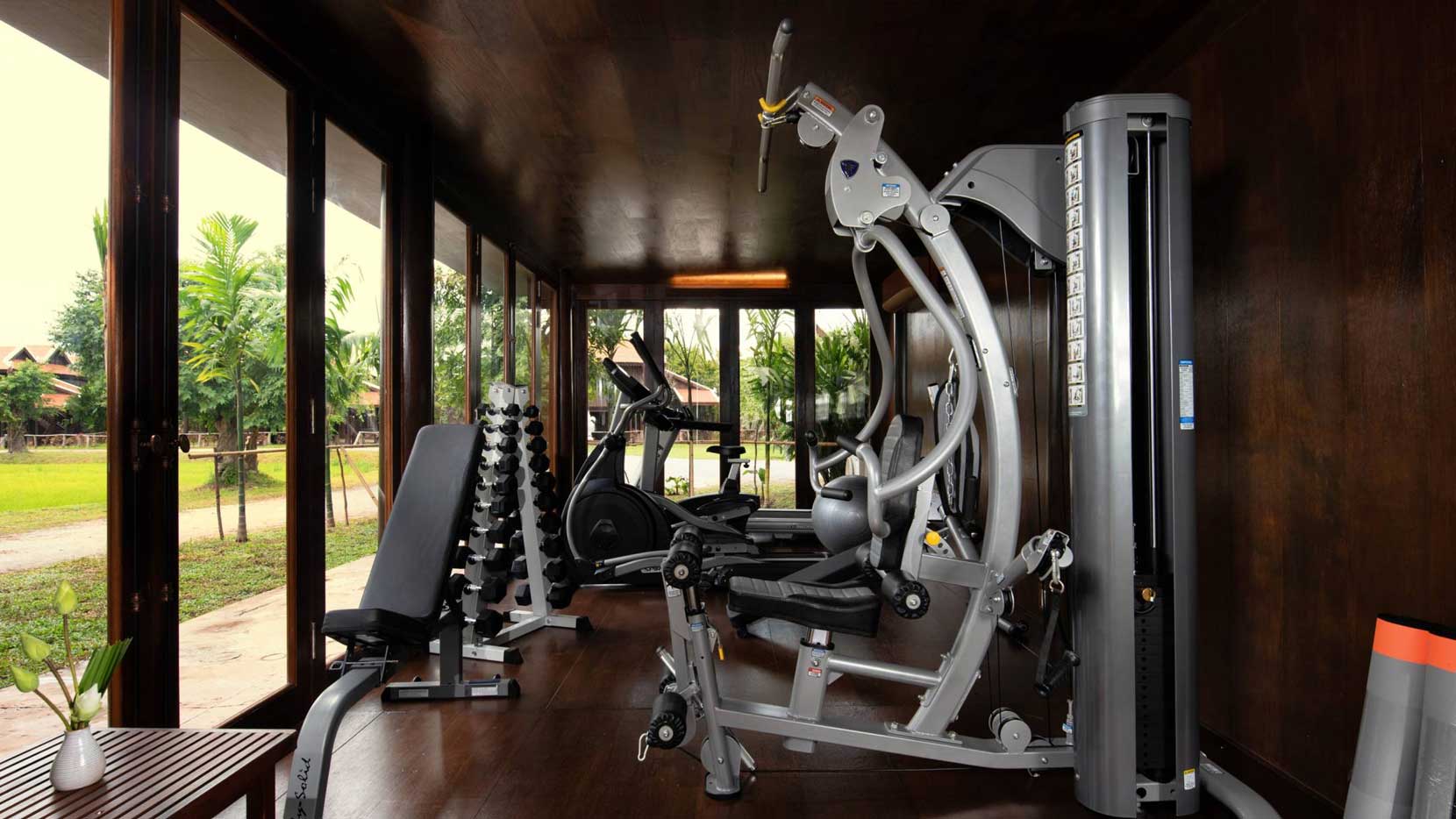 On the ground floor, guests can work out while looking at the nature rice view field from the gym room.